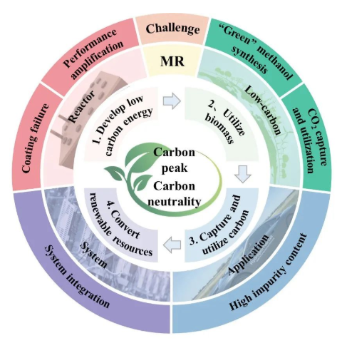 过多的碳排放会导致全球变暖。对于甲醇重整制氢的产物,CO2的捕获、利用和储存可以限制碳排放,并产生高纯度的氢气作为清洁能源。目前,甲醇重整制氢技术中的CO2处理可分为两类:吸附剂吸附和膜分离。